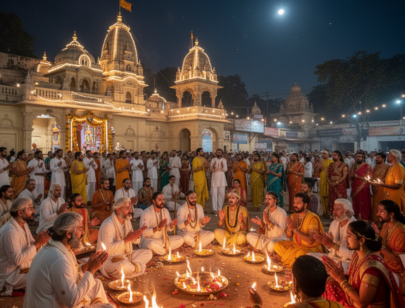 Vrindavan’s energy does not fade after sunset — it grows stronger. Evening prayers, temple lights, cooler weather, and devotional gatherings all contribute to the city’s vibrant nighttime atmosphere.